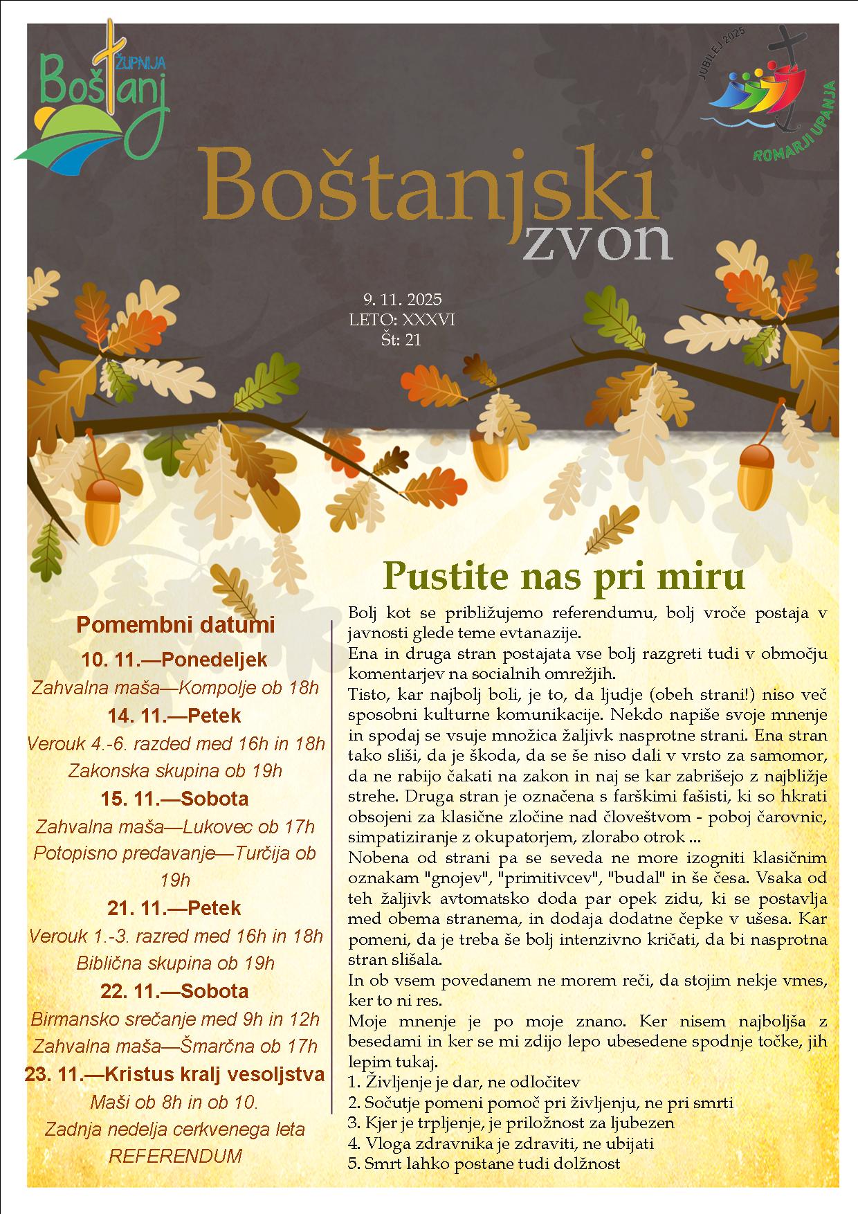 Župnija BoštanjBoštanj 16 8294 Boštanj župnik Andrej GolčnikGSM: (031) 731 - 677Tel: +386(0)7 81 49 710 e-pošta:andrej.golcnik@rkc.si