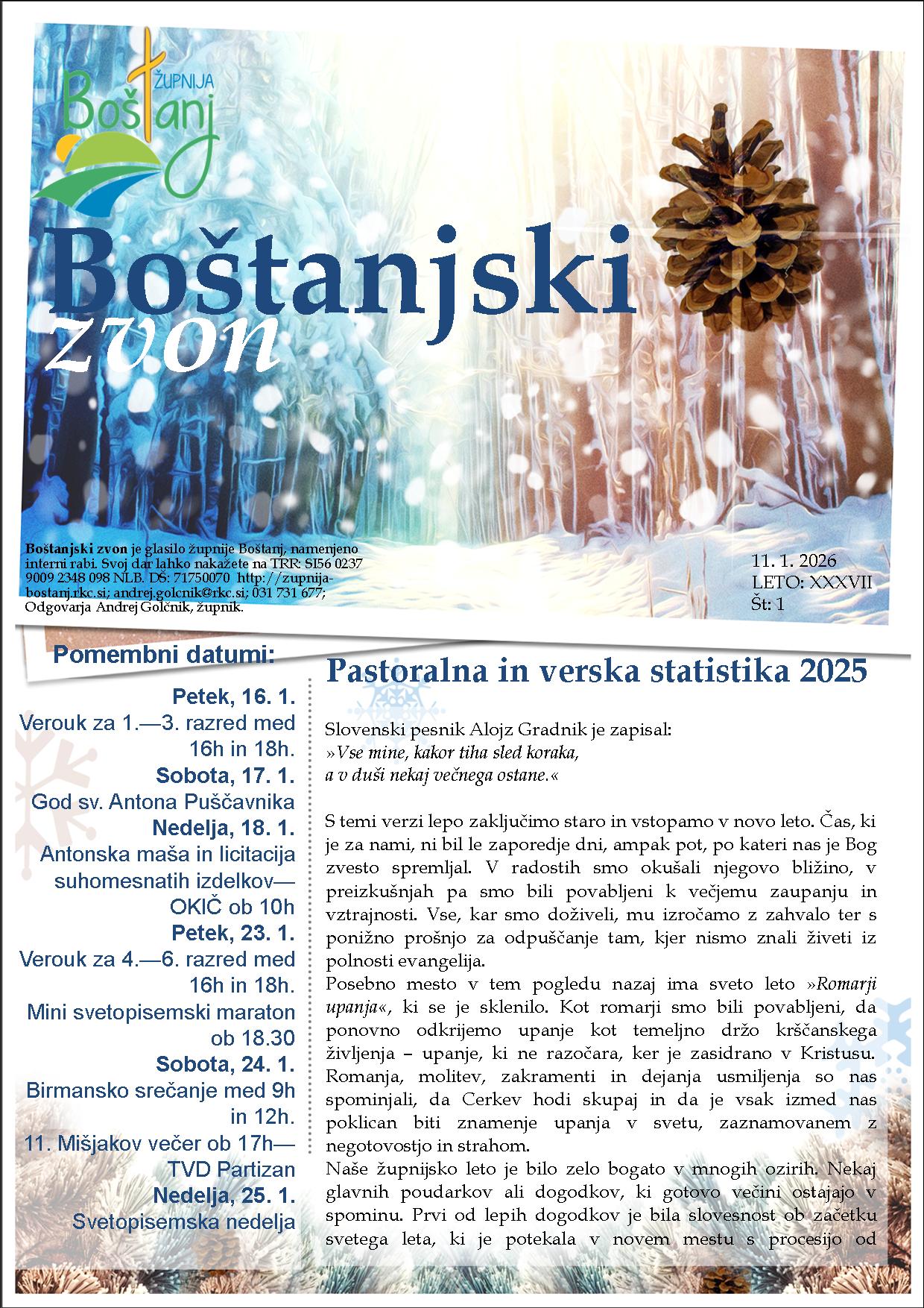 Župnija BoštanjBoštanj 16 8294 Boštanj župnik Andrej GolčnikGSM: (031) 731 - 677Tel: +386(0)7 81 49 710 e-pošta:andrej.golcnik@rkc.si